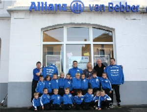 Dank der freundlichen Unterstützung des Sponsors „Generalvertretung für Allianz Bank und Versicherung Christian van Bebber" in Rheinberg konnten für die 20 Kinder und drei Trainer Traininganzüge angeschafft werden.